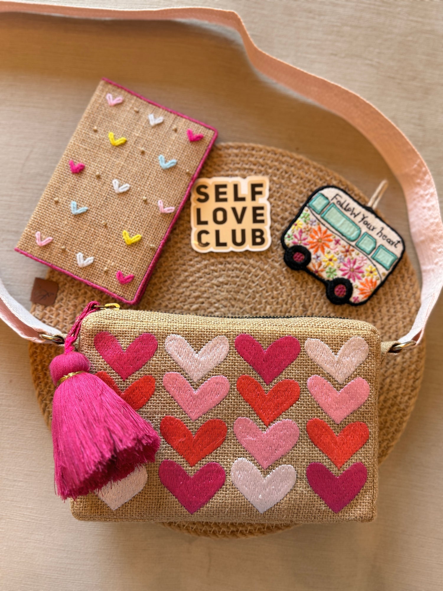 Own the Vibe. Shop the LookAll Hearts Jute Box Bag